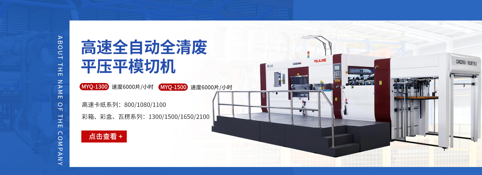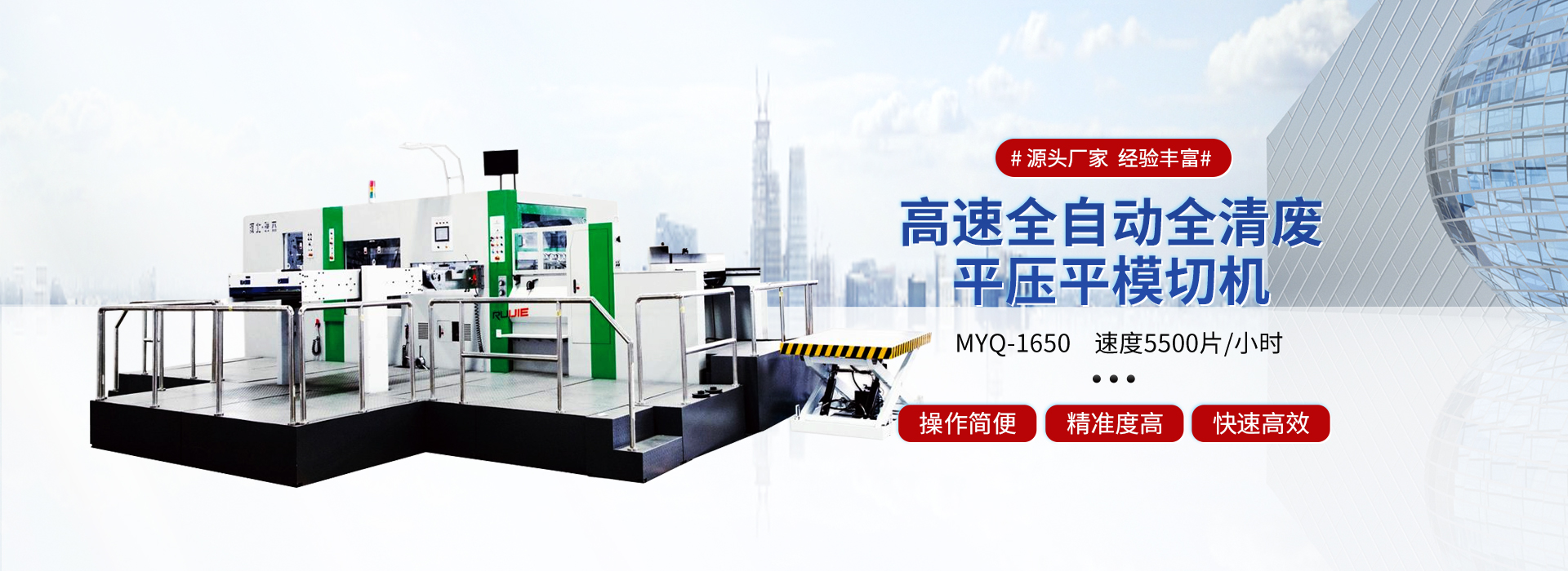 滄州瑞杰紙箱機(jī)械有限公司是一家集研發(fā),制造,銷售為一體的生產(chǎn)系列模切設(shè)備廠家。我們擁有現(xiàn)代化的機(jī)械加工設(shè)備,秉承“以質(zhì)量求生存,以科技促發(fā)展”的宗旨,先進(jìn)的模切技術(shù),給廣大客戶帶來更高的經(jīng)濟(jì)效益。 公司自創(chuàng)立以來,勵(lì)精圖治,銳意創(chuàng)新,產(chǎn)品規(guī)格逐漸完善,質(zhì)量不斷提升,市場持續(xù)擴(kuò)大,產(chǎn)品遍布全國并出口世界102個(gè)國家。多次被評(píng)為河北省質(zhì)量檢驗(yàn)合格企業(yè),產(chǎn)品質(zhì)量放心企業(yè)。率先通過ISO9001:2008國際質(zhì)量體系認(rèn)證、歐盟CE認(rèn)證,保證了產(chǎn)品質(zhì)量的標(biāo)準(zhǔn)性和穩(wěn)定性,確保更快速,便捷的為客戶提供高速率,低成本,自動(dòng)化,高精度的印后加工設(shè)備。 瑞杰系列模切機(jī),以“瑞杰”“恒盛” 為注冊(cè)商標(biāo)。面對(duì)市場的瞬息萬變和客戶日益增長的需求,瑞杰人持續(xù)創(chuàng)新,以提高產(chǎn)品品質(zhì),完善服務(wù),博采眾長,精心設(shè)計(jì),制造每一件產(chǎn)品,更加堅(jiān)定從客戶需求,客戶利益出發(fā),成為客戶信賴的朋友。 Cangzhou Ruijie Carton Mac...